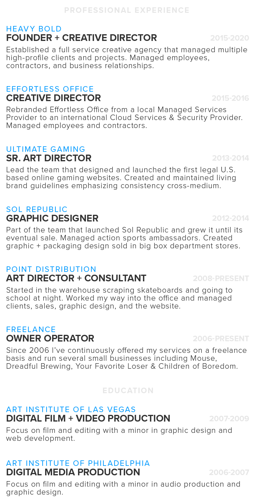 I'm also a semi-professional hot sauce brewer, amateur Volkswagen mechanic, and completely unprofessional dog trainer. If you need someone easy to work with, hit me up!